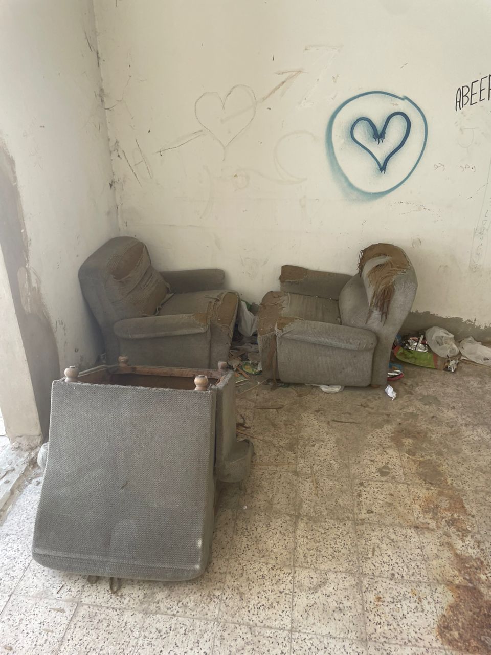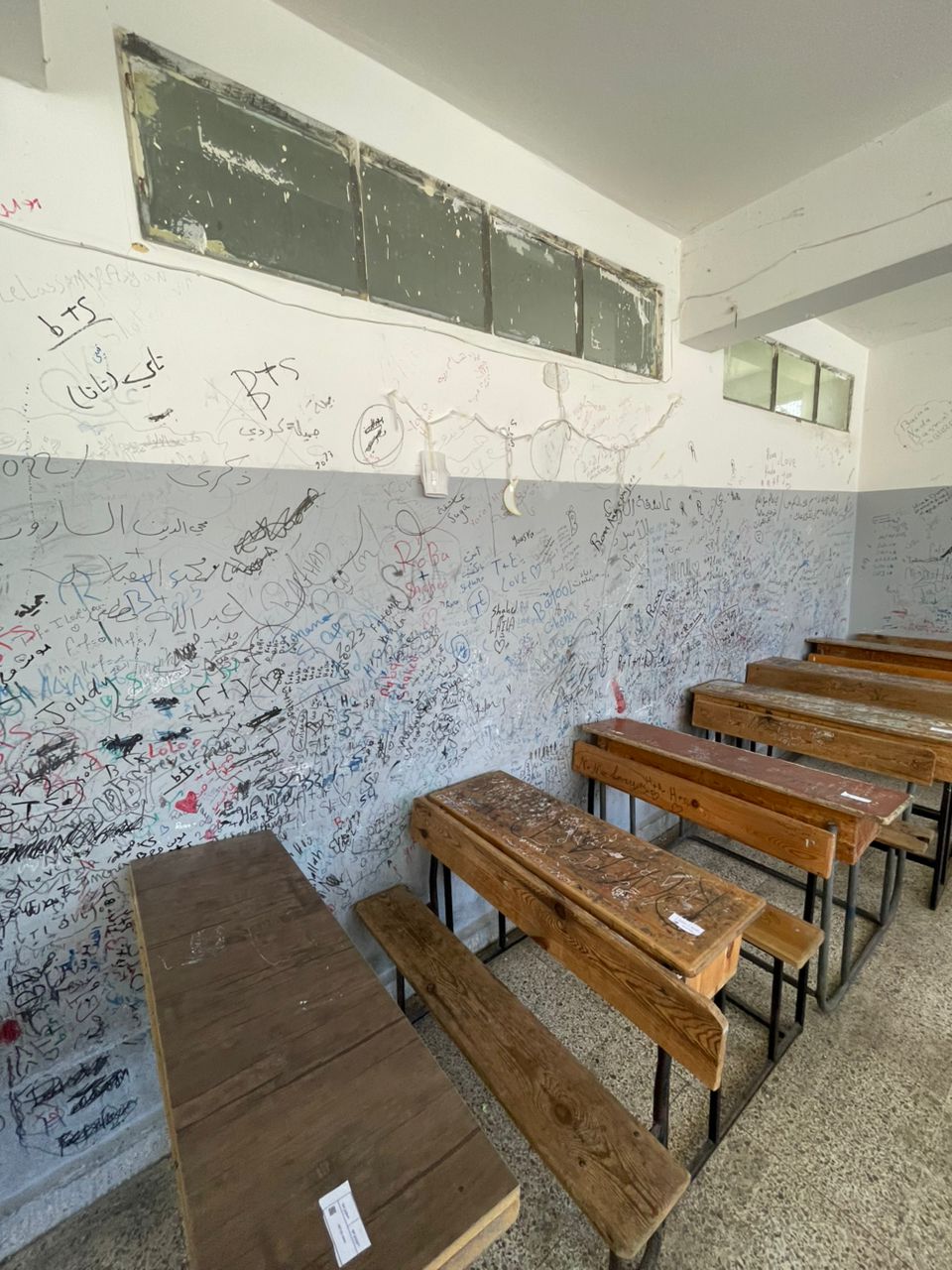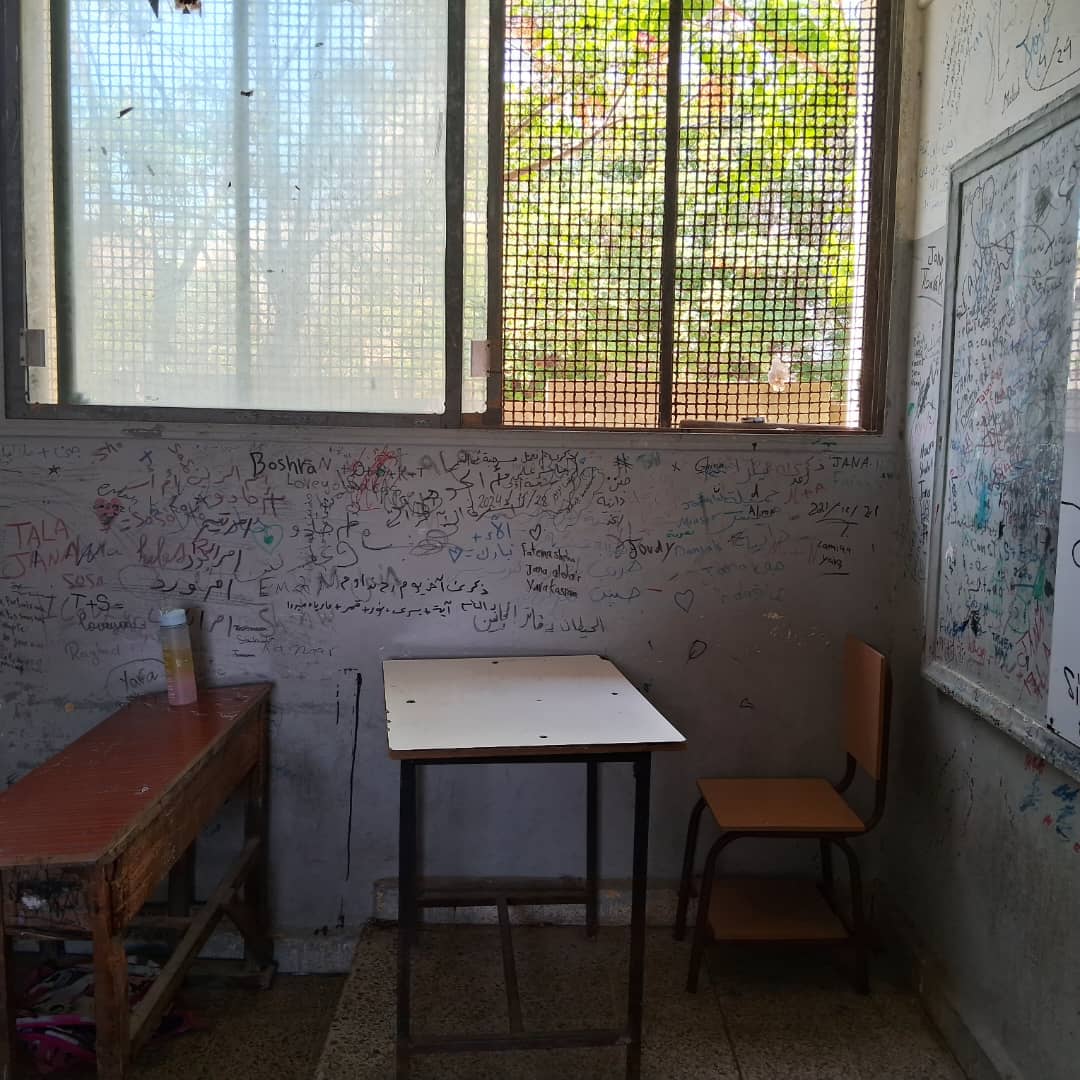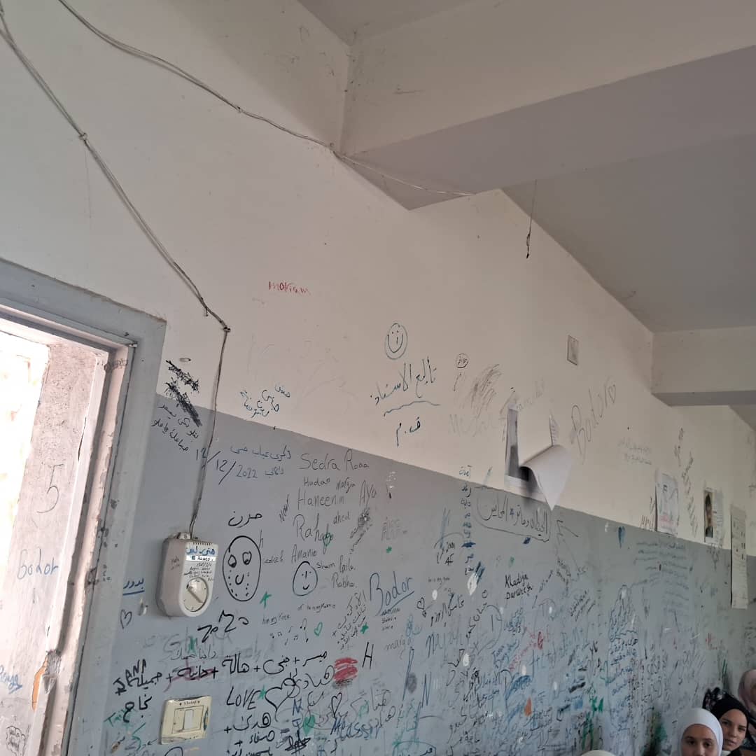 قمنا بعمل زياردة ميدانية للمدرسة للاطلاع على حالتها العامة، ورأينا بأن جدران المدرسة في حالة سيئة، والمقاعد تحتاج للإصلاح، والنوافذ غير قابلة للتحريك بسبب الصدأ.